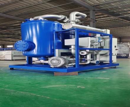 吸附劑的冷卻階段來氣體自環(huán)境大氣,鼓風(fēng)機正轉(zhuǎn)來氣體自環(huán)境大氣作為冷量載體經(jīng)過冷卻器冷卻形成冷量流體對被加熱的吸附劑加以吹冷,這股吹冷用的冷量流體帶走吸附劑的熱量后,由排氣孔排出,冷卻到一定程度后鼓風(fēng)機反轉(zhuǎn),利用吸附塔內(nèi)殘留的空氣作為冷量流體在吸附塔內(nèi)進(jìn)行內(nèi)循環(huán)冷吹,這種吹冷方式不存在浪費壓縮空氣的問題。